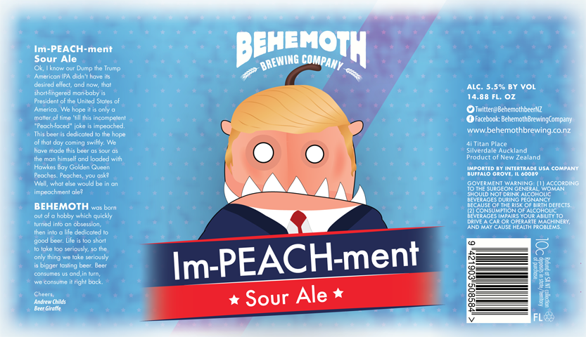 Behemoth Im-PEACH-ment Sour Ale. We have made this beer as sour as the man himself and loaded with Hawkes Bay Golden Queen peaches” Sour ale is a broad spectrum of wild ales, from the fruity and acetic Flanders Red Ales and Oud Bruins, to the experimental ales gaining popularity in the United States which use lactobacillus, brettanomyces and pediococcus in new and wild ways