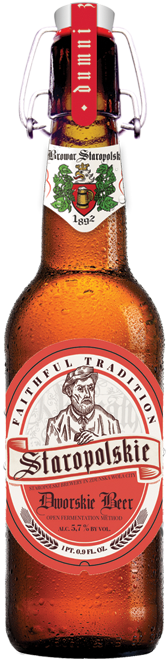 Staropolskie Dworskie is characterized by a noble taste, golden color and a delicate malt-hop aroma. This beer has received the “Quality-Tradition” Certificate – a distinction awarded to products, in the production of which only raw materials are used, whose origin is traceable, and which do not contain GMO components. Light beer, filtered, pasteurized. Ingredients: water, Pilsner malt, hops: Magnum, Sybilla, Hallertauer Tradition; yeast bottom fermentation.